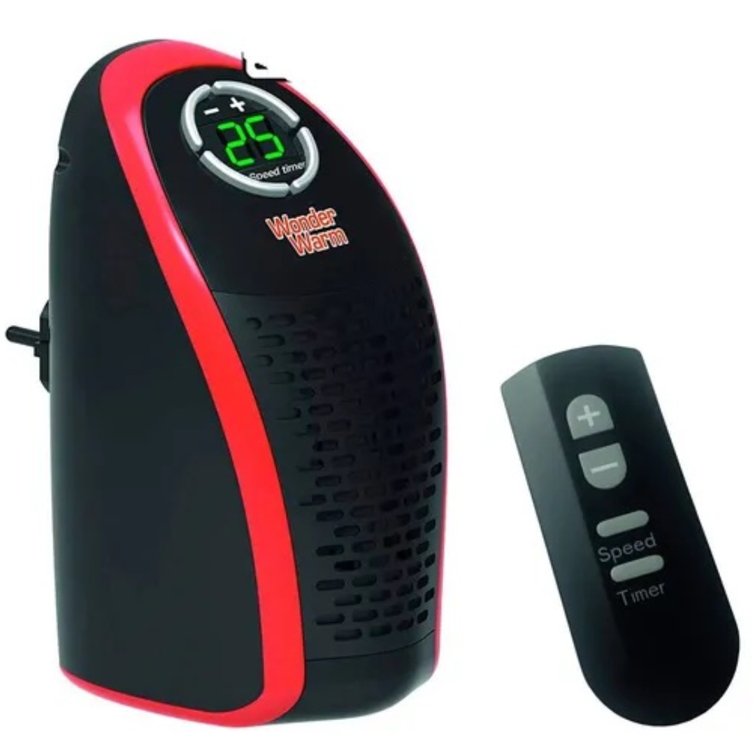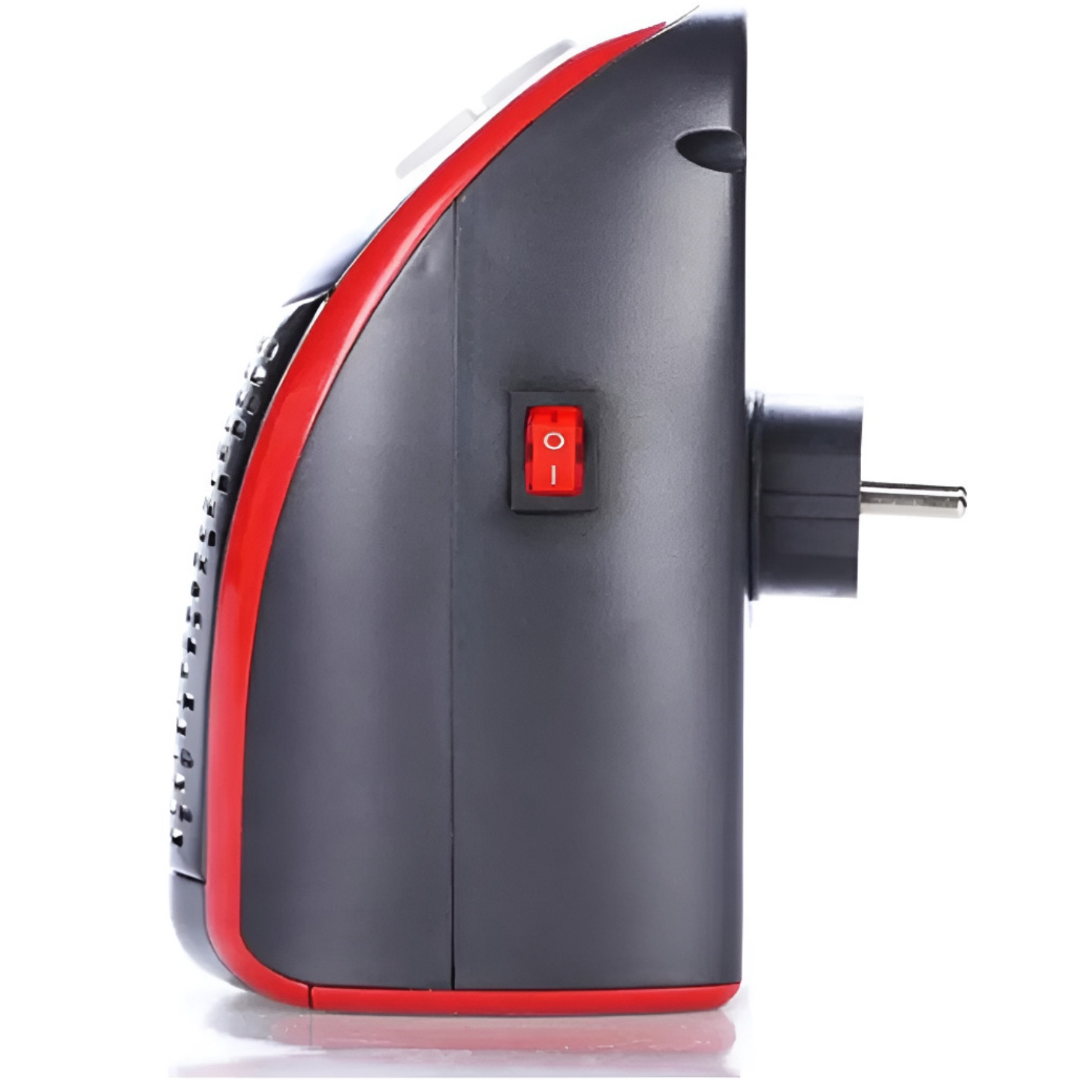 Mini calefactor eléctrico portátil, ideal para calentar espacios pequeños de manera eficiente. 500W de potencia, lo que permite un calentamiento rápido y eficiente en áreas de hasta 23 m².