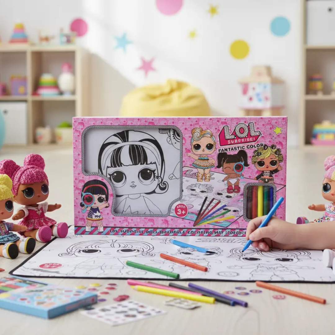 Libro LOL Surprise para colorear incluye divertidas ilustraciones y accesorios para que los niños expresen su creatividad con sus personajes favoritos.