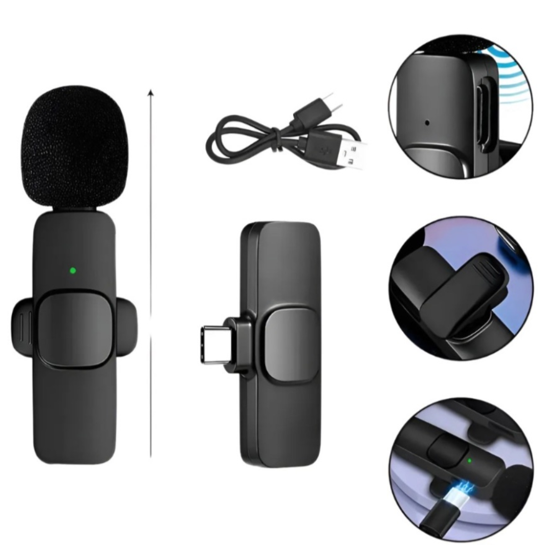 Micrófono corbatero inalámbrico USB C, compacto y plug & play. Ideal para vlogs, podcasts y videoconferencias, con cancelación de ruido y sonido omnidireccional.