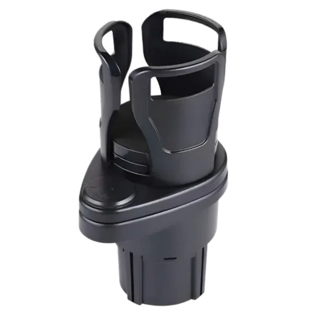 Posavasos multifunción para auto con diseño extensible y ajustable. Permite apoyar bebidas y organizar pequeños objetos. Fácil de instalar y práctico para mantener el vehículo ordenado.