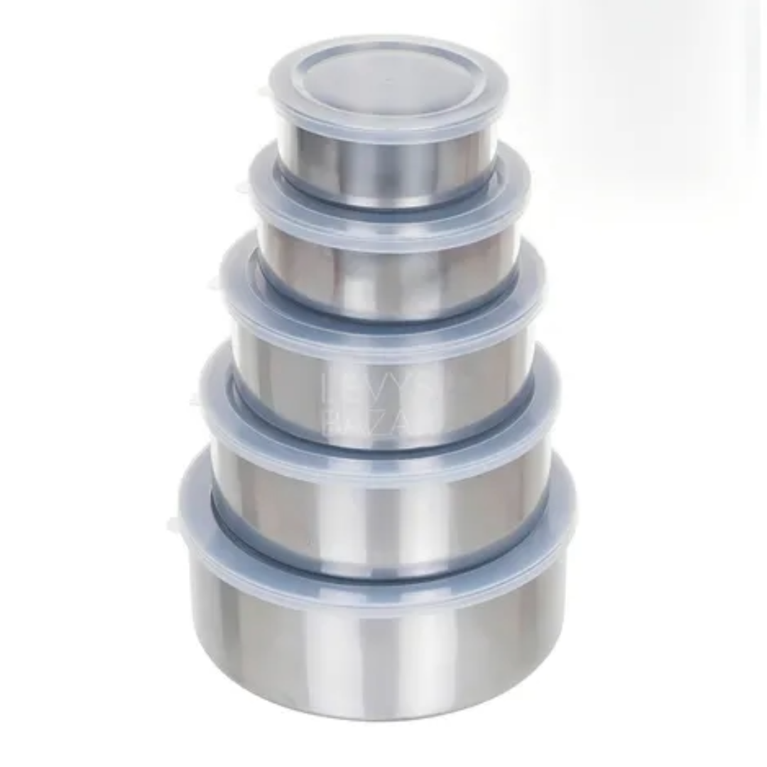 Set de 5 bowls de acero inoxidable en distintos tamaños. Resistentes, prácticos y fáciles de limpiar. Ideales para mezclar, preparar y servir alimentos en la cocina.