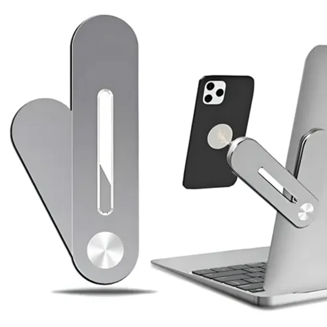 Soporte magnético para fijar el celular a la computadora. Ideal para tener el teléfono a la vista mientras trabajás o usás la PC. Práctico, seguro y fácil de colocar.