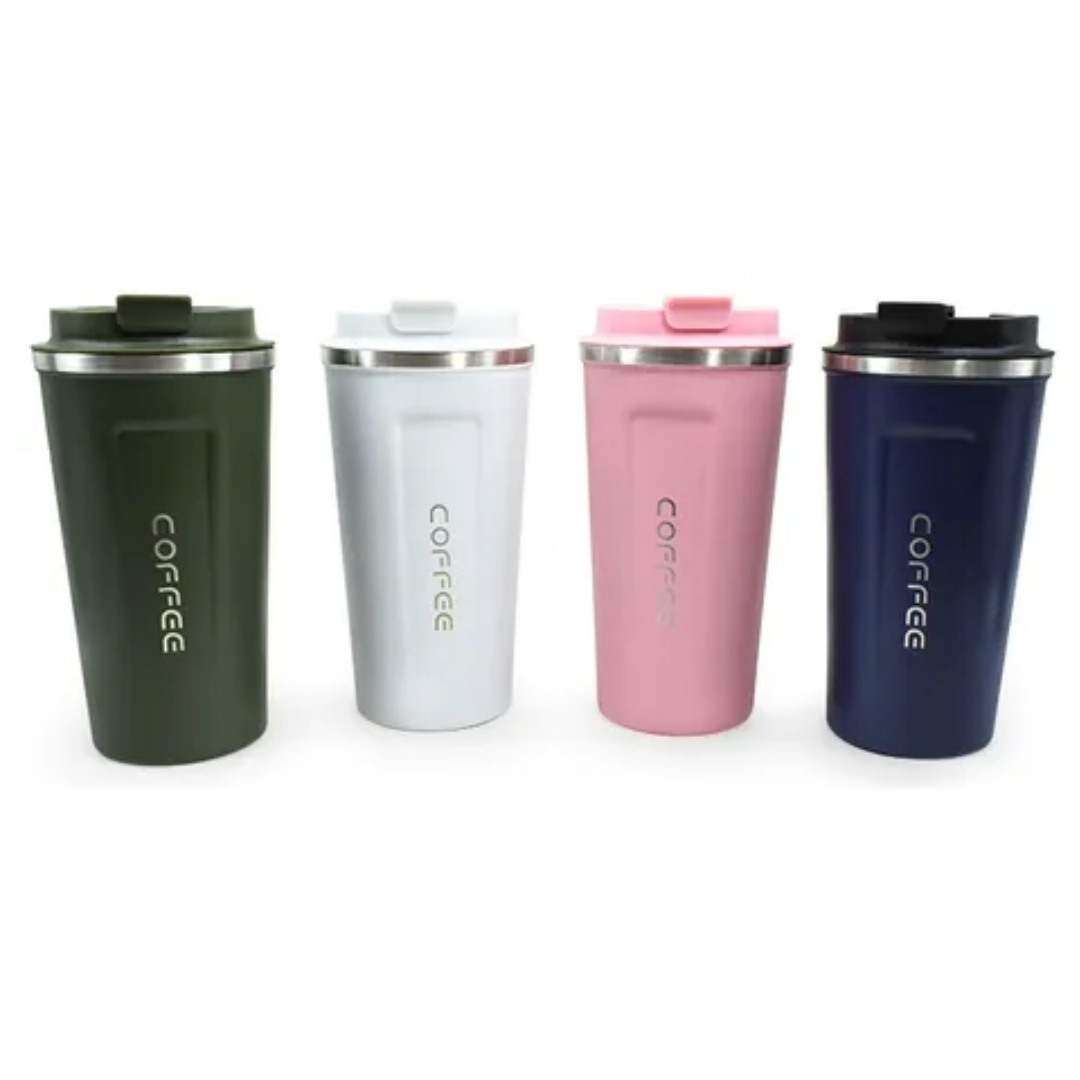 Vaso coffee térmico con sistema de traba antiderrames que evita pérdidas de líquido. Mantiene la temperatura por más tiempo. Ideal para llevar café o bebidas calientes a cualquier lugar.