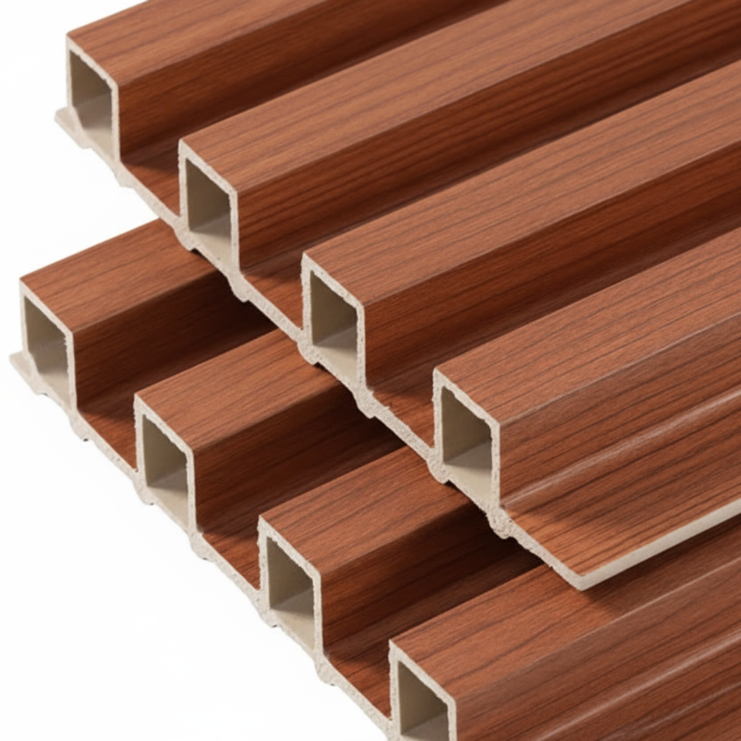 Panel WPC decorativo para interiores, de 2.90×0.16m. Fácil de instalar, cortar y limpiar. Ideal para revestir paredes con estilo moderno y acabado duradero.